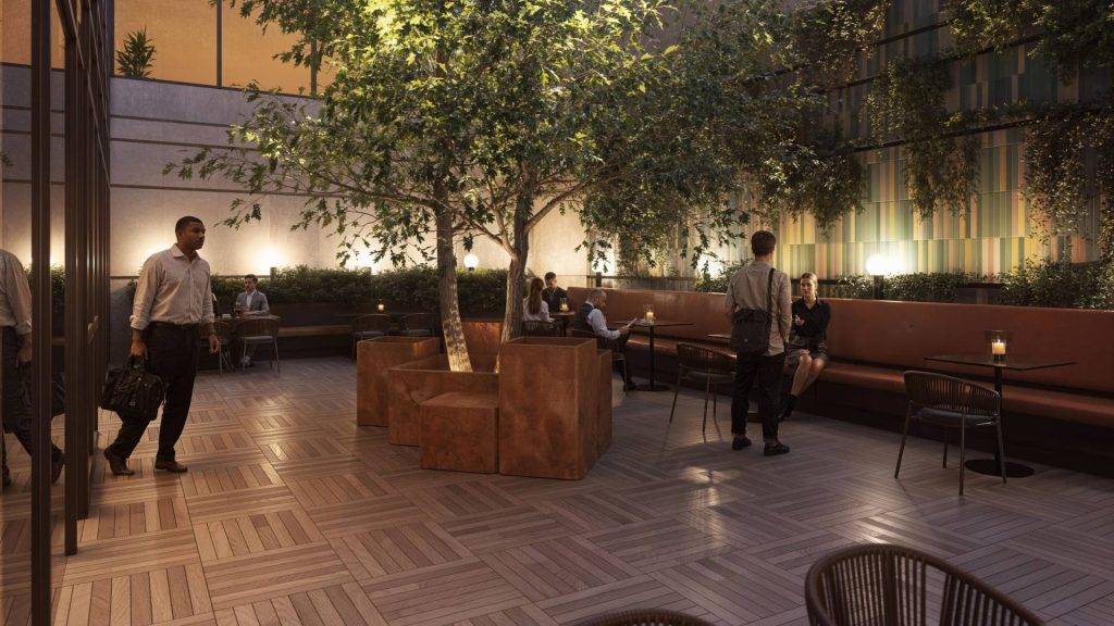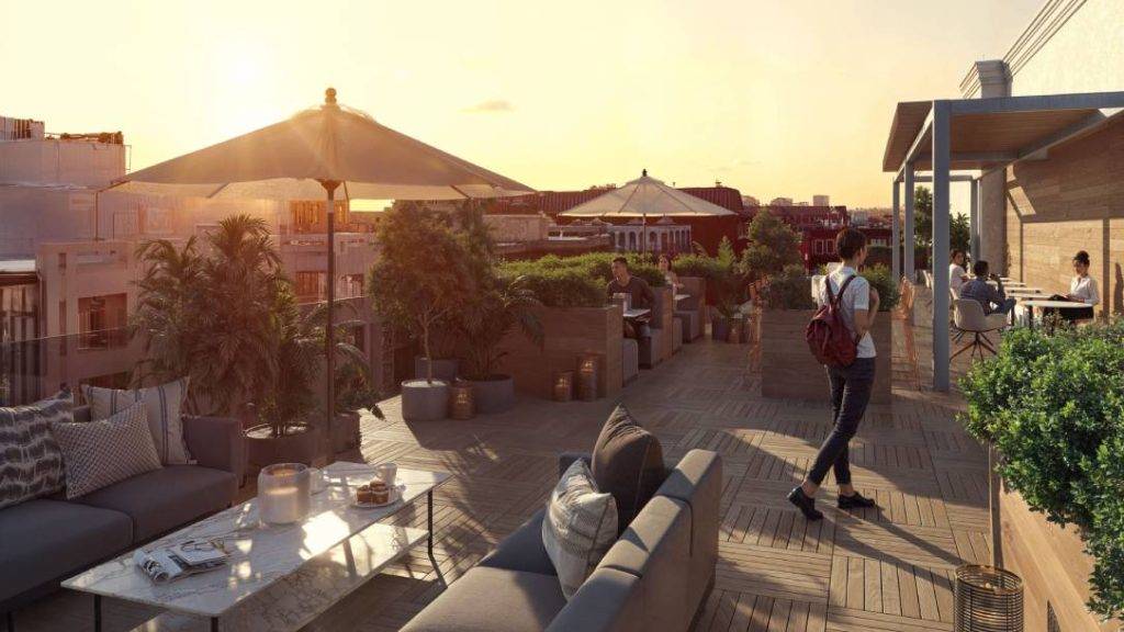 Outdoor meeting spaces with city views